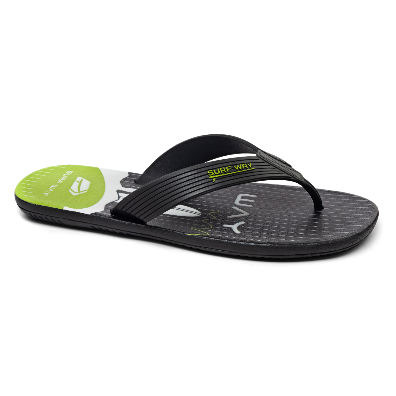 Para quem não quer apenas caminhar, mas quer marcar presença. O Chinelo Surf Way Neon tem uma estética clássica do surf com um toque urbano e moderno. O contraste do fundo escuro com os detalhes em verde vibrante reflete a personalidade de quem está sempre em movimento, seja a caminho do mar ou curtindo um dia de sol na cidade.